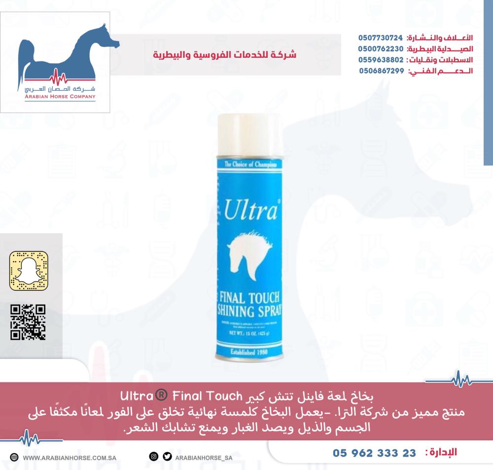 منتج مميز من شركة الترا. -يعمل البخاخ كلمسة نهائية تخلق على الفور لمعانًا مكثفًا على الجسم والذيل ويصد الغبار ويمنع تشابك الشعر.