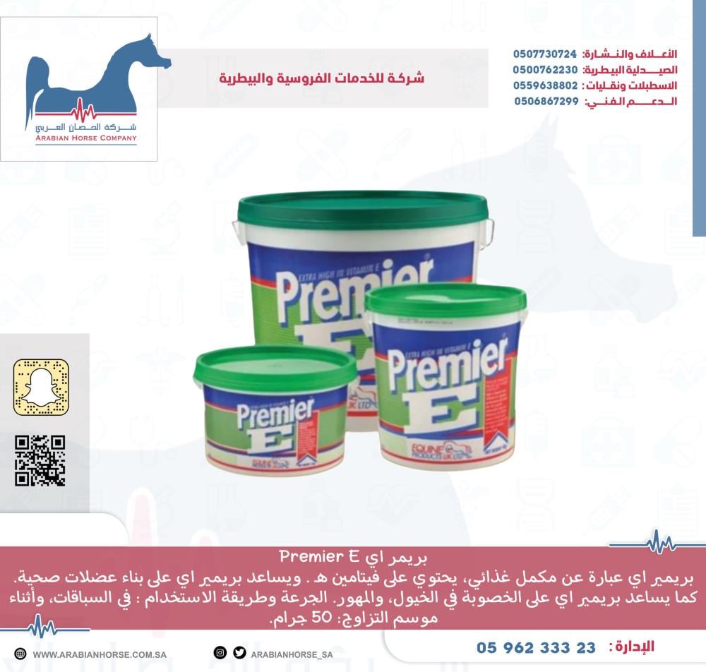 بريمير اي عبارة عن مكمل غذائي، يحتوي على فيتامين هـ . ويساعد بريمير اي على بناء عضلات صحية. كما يساعد بريمير اي على الخصوبة في الخيول، والمهور.