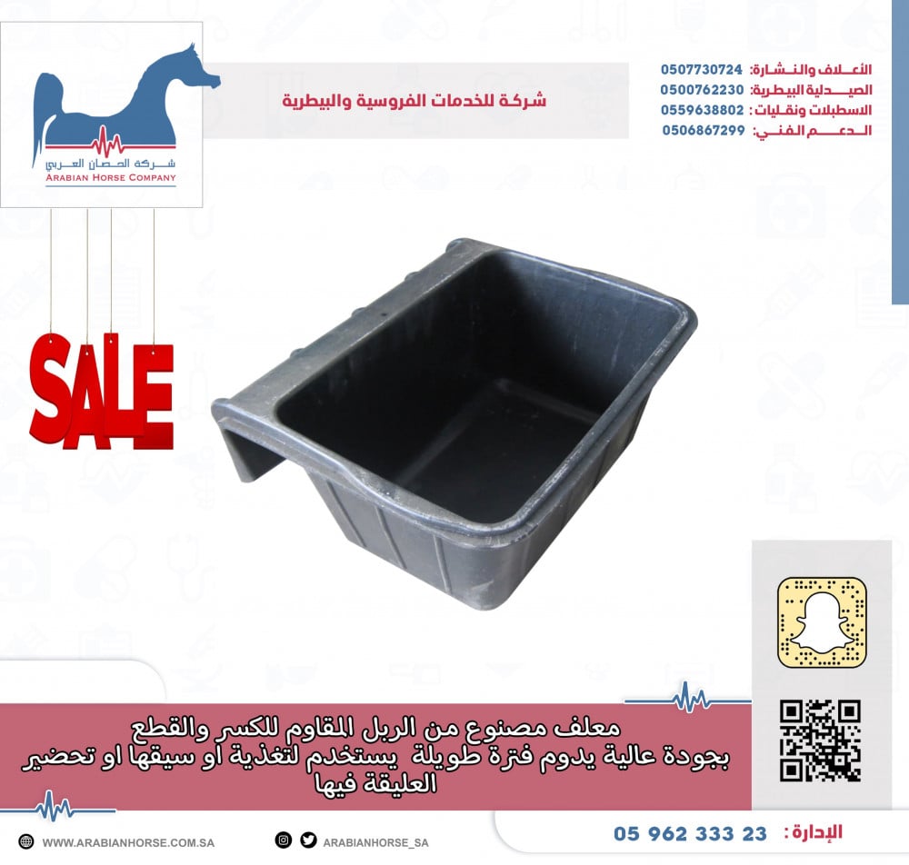 معلف مصنوع من الربل المقاوم للكسر والقطع بجودة عالية بدون فترة طويله يستخدم لتغذية او لتحضير العليقة.